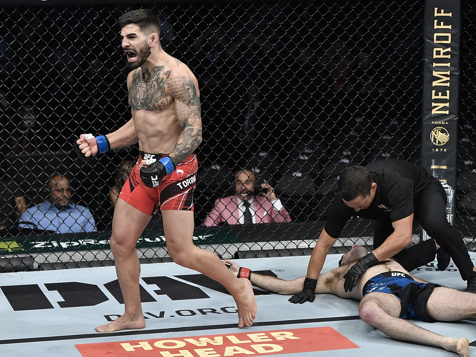 ^^^The first fight of the night will feature an outstanding undefeated prospect out of Spain in Ilia Topuria (11-0). He’s finished 10 of his 11 wins and rides a 2 fight KO streak against 2 established UFC Veterans in Ryan Hall and Damon Jackson (as presented last weekend). He will square up against Jai Herbert, another young up and coming prospect in the division who sits with a 1-2 record in the UFC. After a couple rough losses he managed to bounce back with a KO victory over Khama Worthy in the first round. He’s primarily a striker with almost all of his wins coming by way of KO (9). Ilia will be a tough test Saturday as he poses a major threat on the mat, having 7 of his 10 finishes by submission, look for Topuria to get this down early and look to end this fight in the grappling department. If Jai can stop the TD’s things could get interesting, but I’ll take Ilia in this one.